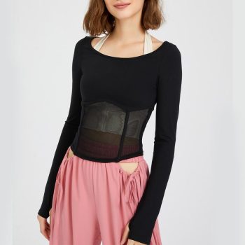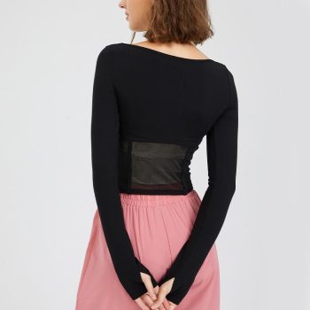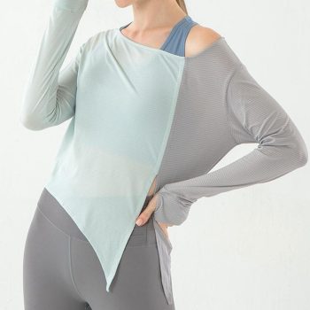 Breathable Off-the-shoulder Sports Contrast Stitching Yoga Long Sleeves