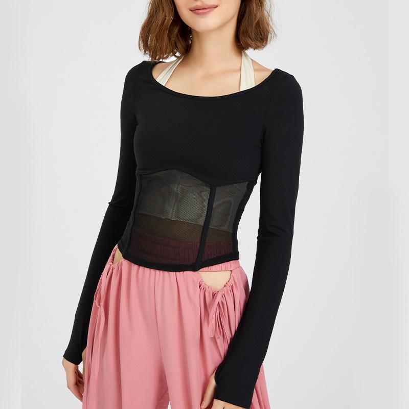 SKU: splicing-mesh-elastic-tight-round-neck-lon7214039-JJYPJ6 Category: